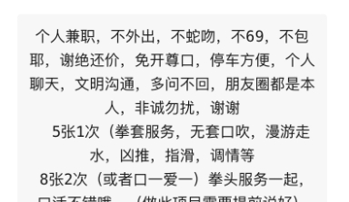 不限 无套 口爆 鸳鸯浴 艳舞 按摩 波推 指滑 臀推 毒龙 舌吻 环游 吹箫 六九 深喉 颜射 丝袜制服