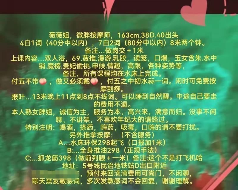 服务没得说莞式那套,可以舌吻有女朋友的感觉非常舒心,特别是那172的大长腿,完美的炮架子.450环保,800全套,喜欢的老哥们可以去试试,我返师了两次每次都满意而归