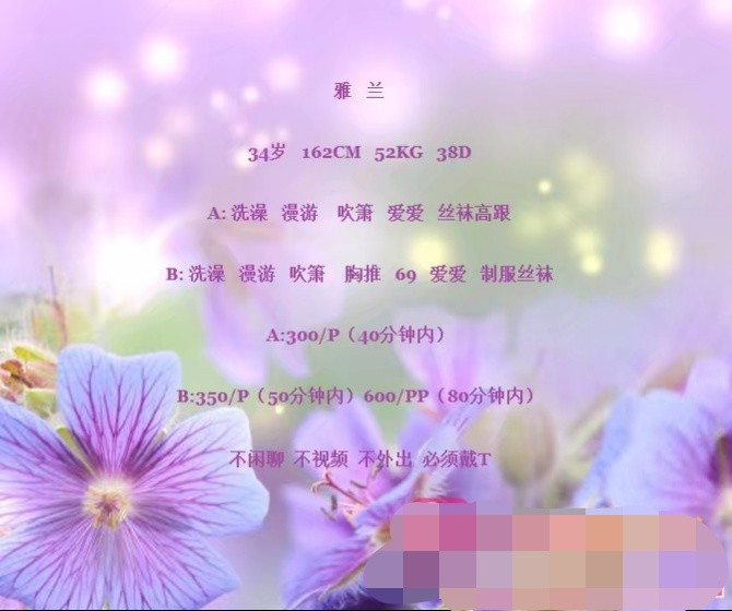 这个希希以前好几个人都发了,说是不错,服务好,今天就去了,好嘛,说是35,到了一看四十多,洗澡敷衍,服务敷衍,随便口了几下就让开始ii,小狼经验不多,第一次踩雷很不舒服,希望狼友们以后要小心啊