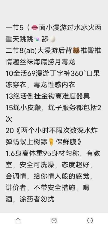 服务项目: 口活 大活 漫游 毒龙 冰火 跳跳糖
