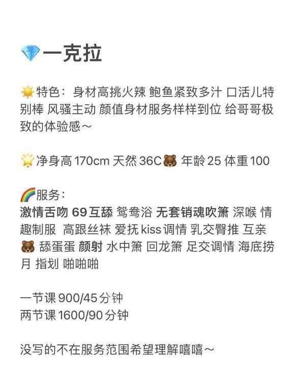 小姐姐有种良家的感觉,真人粉嫩嫩的和照片一样,身材比例非常完美,说话声音软软的,性格开朗温柔,口活有着轻轻的包裹感非常的销魂,深喉也相当的带劲,一插进去暖暖的非常舒服,啪起来那水很多,感觉像泡在里面一样,叫声骚里骚气的和之前判若两人。体验和服务一流,感觉像找了一个良家小娇娘,下次再找个时间狠狠干她。