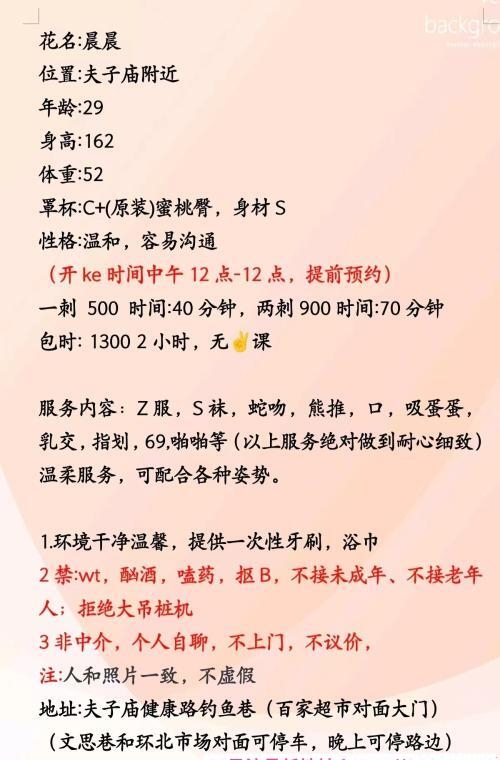 服务没的说目前是我在南京玩过态度,技术,项目最好的没有之一!年龄的确稍大但是一对巨乳完全够用波霸级别的冲这点这个价格绝对划算,从头舔到腿全身按摩所有的服务只要想到基本都有,情绪价值给的也很足,不好我也不会二刷