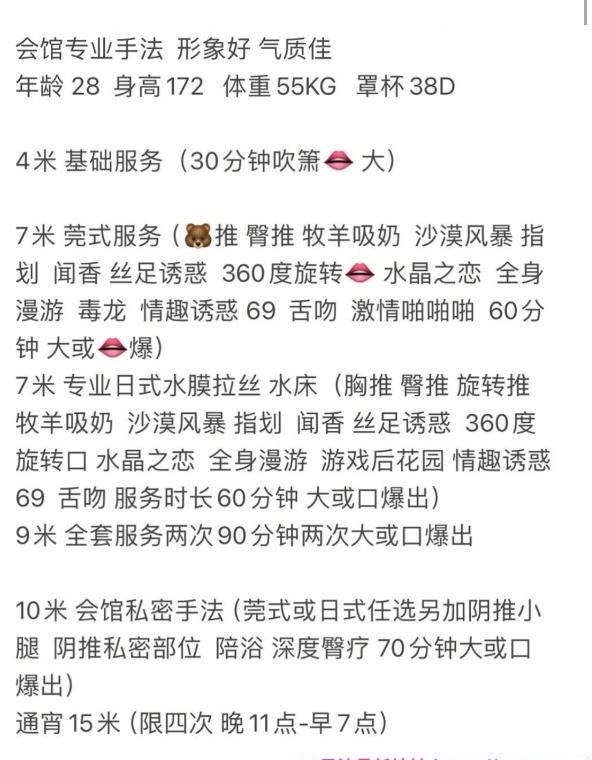 沈阳的一个老人了,口碑一直都很好,正好有空就去试试,约好时间到地方指引上楼,挺好找,环境也不错,见面第一印象是身材真好啊,本人和照片一样,很真实,老师也很热情,我选了一个一小时不限次的套餐,先一起洗了个澡,然后挑了个丝袜换上开始上服务,项目中规中矩,没啥花活,但是性价比很高了,很适合快枪手,泄火神器。而且性格也很好,可以随便亲随便摸,还会回锅的