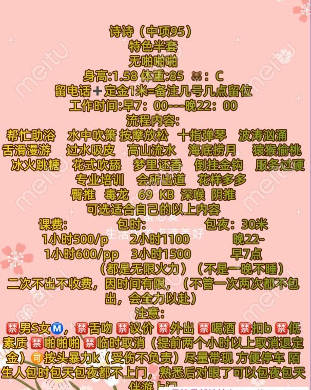 服务项目: 帮忙洗澡水中啸花式调情花式吹花式口69毒龙深喉倒挂金钩口爆……