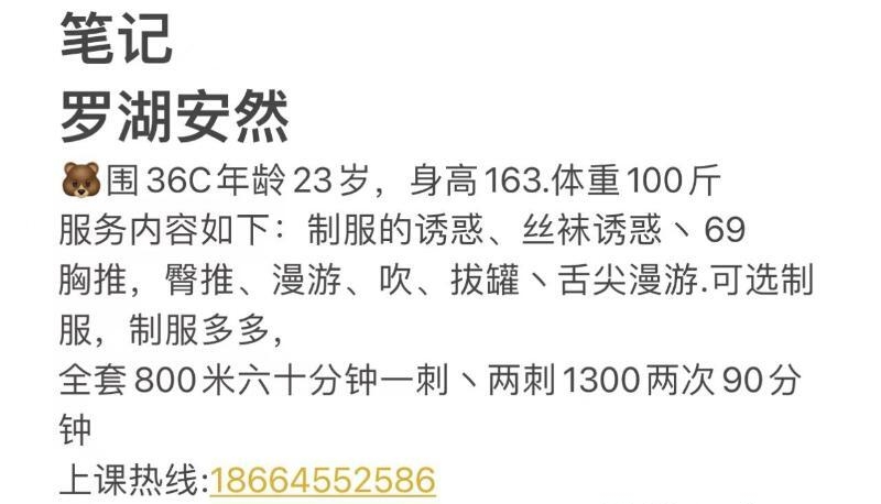 关注安然老师挺久了,看过狼友们的评价都说好。之前约过几次都没约到,今天上线注意到老师有空,就赶紧约了。本着尝试下的心态去的,毕竟深圳这地方好的老师真的太少太少了,很多都是价高网红图。准时到老师课室,进门老师躲在,看了下老师整体,哇真的,没来错,人真的和照片差不多,当天也是一身黑丝ol装,值了值了。老师真的很骚,真的我见过的最骚,身材确实很好,腰细屁屁。简单洗漱后,老师挑逗的眼神,给我按摩ab面,给我口的时候眼神的挑逗,加上舌头的挑逗,还有用丝足挑逗牛子,属实让我忍不住想插入她身体,主要是搞太爽了,安然的小穴真的好紧,还会夹着我的肉棒,水也很多,来之前想着会不会给秒了,一没忍住就交给老师了。狼友们,连我这种之前平均坚持半小时的都给安然老师秒了,找老师前要锻炼好休息好啊,否则不能跟老师缠绵更久。 优点身材高挑,缺点小穴过于舒服