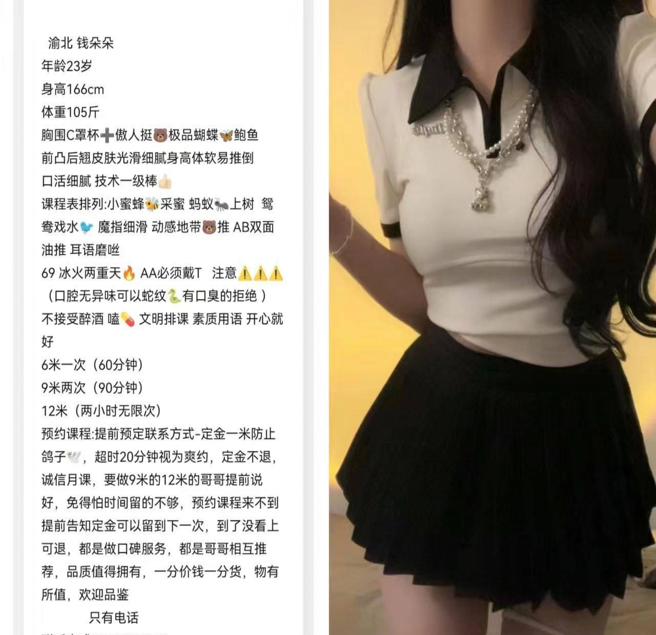 朋友介绍的渝北妹子,约好时间到小区楼下,遥控上楼开门。进门就见她穿黑丝短裙迎接,长得挺漂亮,五官精致,身材挺好的,腰细臀翘,手感不错,收钱后拉我去洗澡,洗得很仔细。冲完她直接蹲下含住,口活温柔很舒服,很快就硬了。接着让我吃奶,奶子软大,然后上床舌吻+69,配合挺默契。正式做换了两个姿势,下面紧实水足,包裹感强,叫声自然不夸张。服务到位又舒服,完事躺着聊了会儿,很不错的体验,推荐。