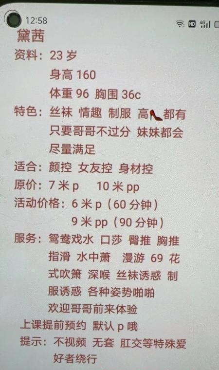 妹子是正儿八经会玩,最开始收费600的,生意不好现在400了,进门妹子打扮的很精致,基本服务,口,69丝袜高跟,架不住妹子好看,大长腿,很瘦,胸一个手握住正好,跟自己女朋友做爱一样,情绪价值拉满,还可以用手扣,反食好多次了,各位狼友可以无脑冲,绝对年轻漂亮,空间有课表和本人视频