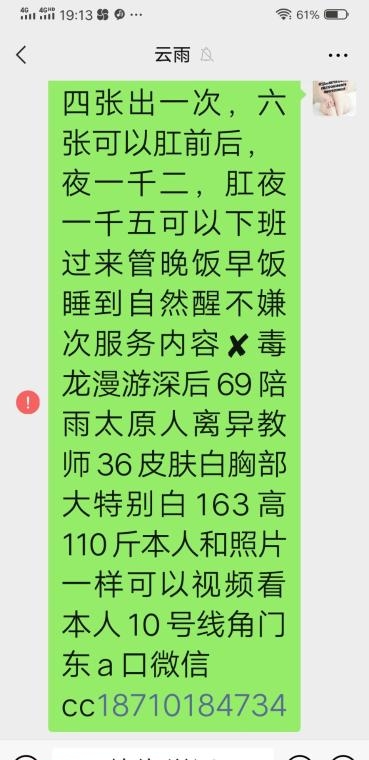放假期间比较无聊,精虫上脑,加了小姐姐联系方式,小姐姐火速回复,发了照片,看起来应该属于比较温柔的,于是就驱车前往。一进门小姐姐热心帮我脱了外套,先去洗了个澡,随后就正常开始,口活挺好的,尤其是她舌头很软,也比较耐心,做完AB面后,还给做了毒龙,之后后入内射,整个过程约40分钟。只能说性价比比较高,但年龄稍微大了点,应该快40了。
