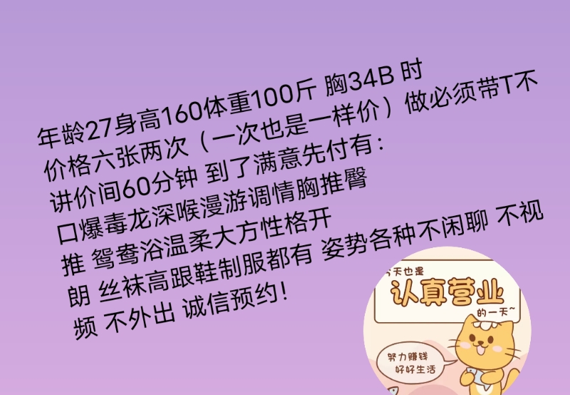 经常约的老师,性格超好,超温柔,健谈不冷场。服务超到位,大长腿配丝袜也是一绝,我每次去都是让她穿着丝袜在上面自己动,老师也是卖力不敷衍,节后也是刚回杭州,喜欢的狼友可以感受下