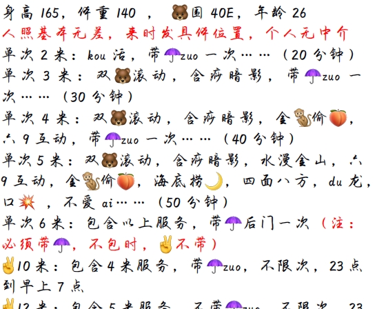 沈阳的一个老人了,口碑一直都很好,正好有空就去试试,约好时间到地方指引上楼,挺好找,环境也不错,见面第一印象是身材真好啊,本人和照片一样,很真实,老师也很热情,我选了一个一小时不限次的套餐,先一起洗了个澡,然后挑了个丝袜换上开始上服务,项目中规中矩,没啥花活,但是性价比很高了,很适合快枪手,泄火神器。而且性格也很好,可以随便亲随便摸,还会回锅的