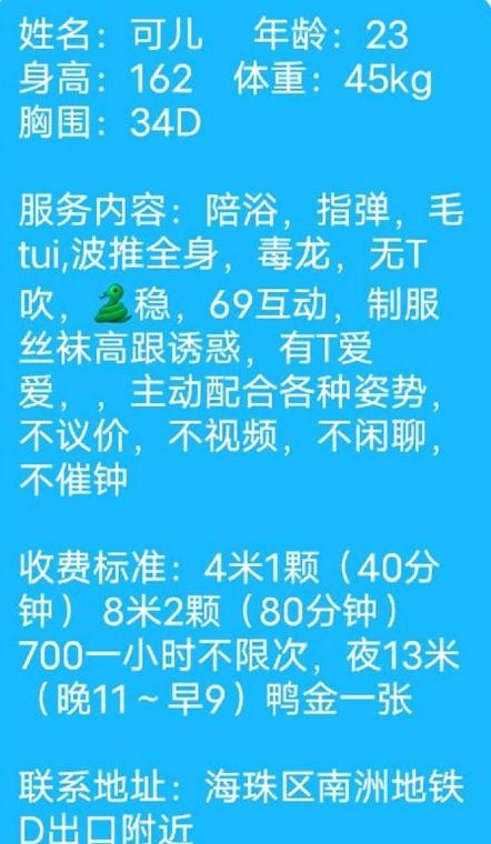 好约,回复及时,位置在地铁口附近,离地铁站走路几分钟。课室很好找,指引清晰,一路都没绕弯。一进门就甜甜地叫“帅哥”,特别热情,先递水照顾得很周到。交水费,有陪浴,全程都保持着微笑,服务态度真的没得挑。还有一次性毛巾和漱口水,细节很到位。她主动换上JK制服和黑丝,视觉冲击直接拉满。口技很不错,舌头灵活地绕着龟头来回舔,带来一阵阵酥麻感。胸很大但奶头小巧,先用舌头和手各玩弄一只,慢慢画圈圈,吮吸轻咬奶头。女上位起手,技术不算特别突出,基本由我来主导节奏,她耳边一直说着骚话,撩得人心痒痒。节奏从慢到快,她在耳边呻吟,听得我只能全程加速。她很会配合轮换姿势,中间女上位时幅度很大,速度也跟得上,换成传教士位,顶得特别深,叫床声音又软又浪,只能默默再加速。双手捏着她的大奶,不断冲击,终于憋不住出水了。