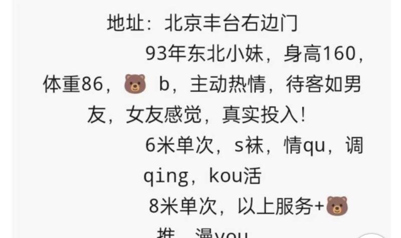放假期间比较无聊,精虫上脑,加了小姐姐联系方式,小姐姐火速回复,发了照片,看起来应该属于比较温柔的,于是就驱车前往。一进门小姐姐热心帮我脱了外套,先去洗了个澡,随后就正常开始,口活挺好的,尤其是她舌头很软,也比较耐心,做完AB面后,还给做了毒龙,之后后入内射,整个过程约40分钟。只能说性价比比较高,但年龄稍微大了点,应该快40了。