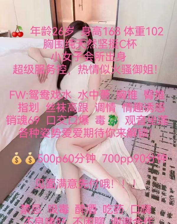 一进门,香香的。一看就是自己喜欢的类型,高颜值清冷系御姐,个子高,身材好,看着有点骚。交了水费去洗澡,老师很细心的帮洗途中给我来了一次水中箫,特别刺激,完了出来帮我擦干身子。蹲下来的时候,视觉效果满分,皮肤白又滑。上床继续服务,服务过程10来分钟,突出一个享受,还用那销魂的眼神看着你,爽。出来玩,就是喜欢这种服务耐心质量高的,完了办正事,老师的大长腿架在肩膀上的感觉,只能自己体验了,叫床的声音也很配合。约的两课。第一次完事,就躺床上休息聊天,挺愉快的。休息差不多,接下来第二课,风骚的挑逗感觉来了,拉着我就开干,体验感很好,老师里面很热,干起来超滑,那翘臀真的太有诱惑力了,爽歪歪。顺便说一句,老师的眼神和舒服时的表情非常的投入超棒的体验,有机会一定会再约